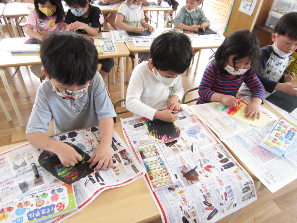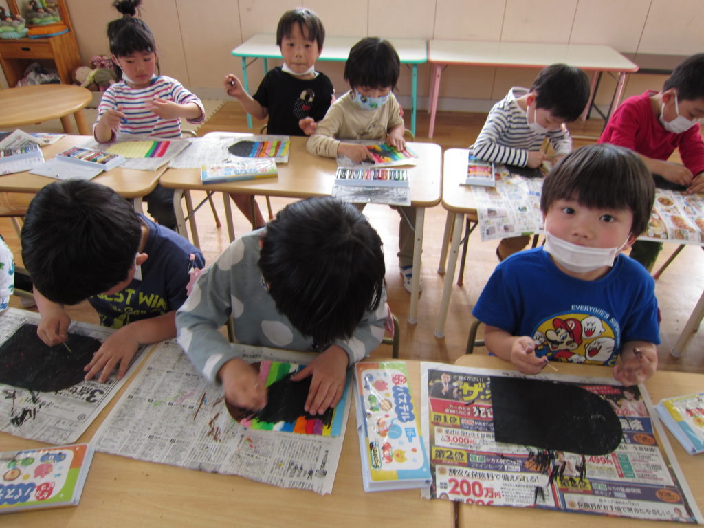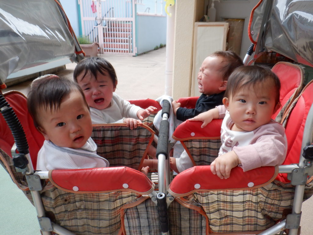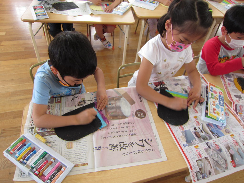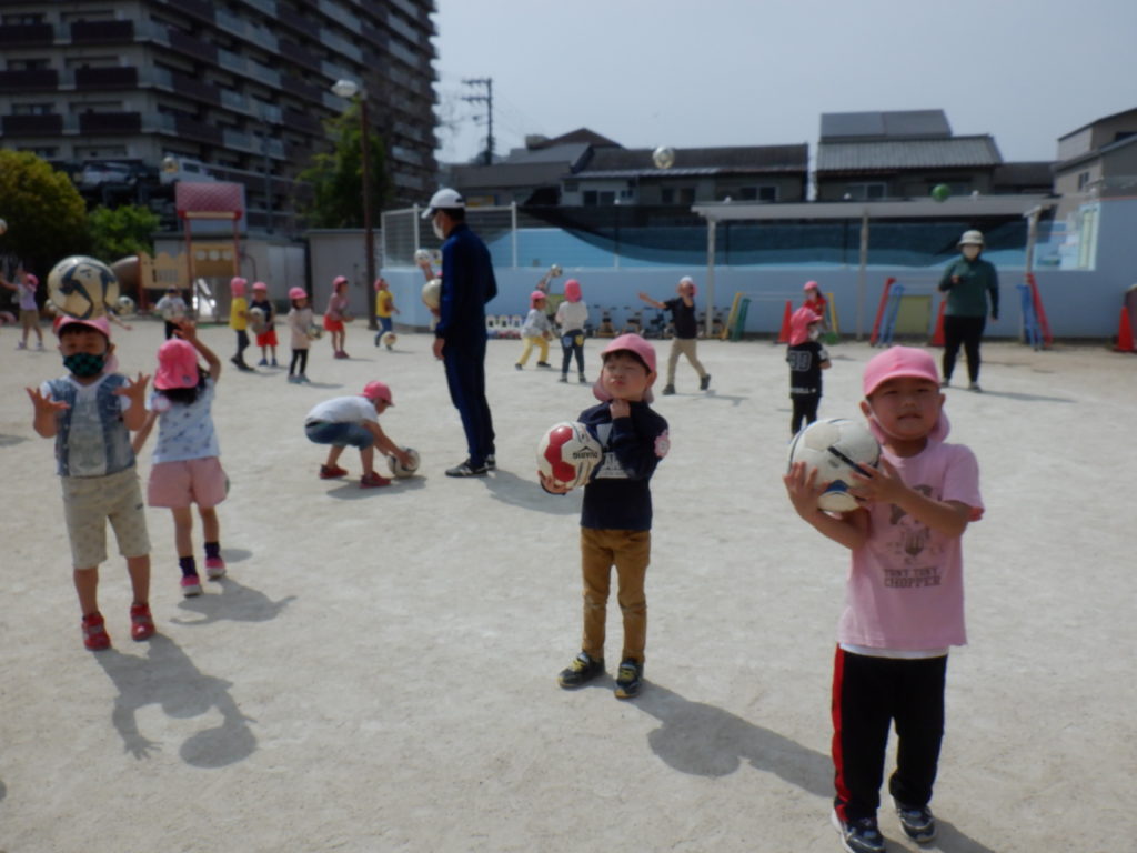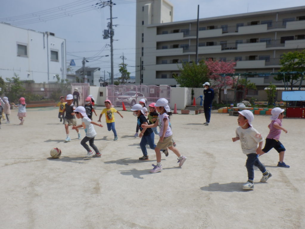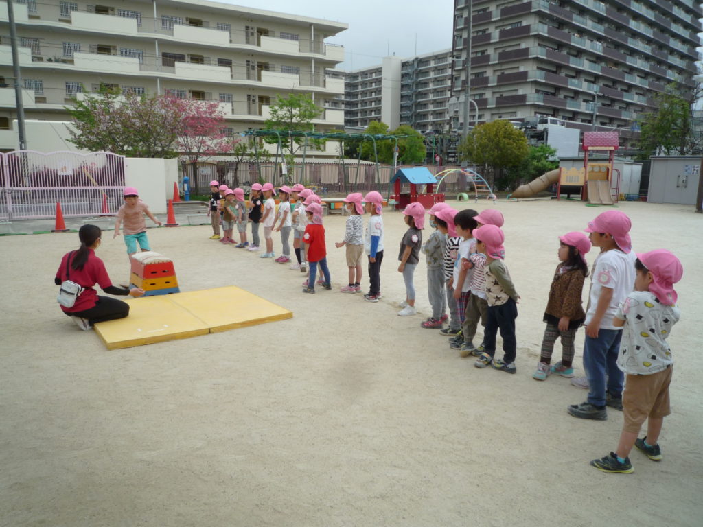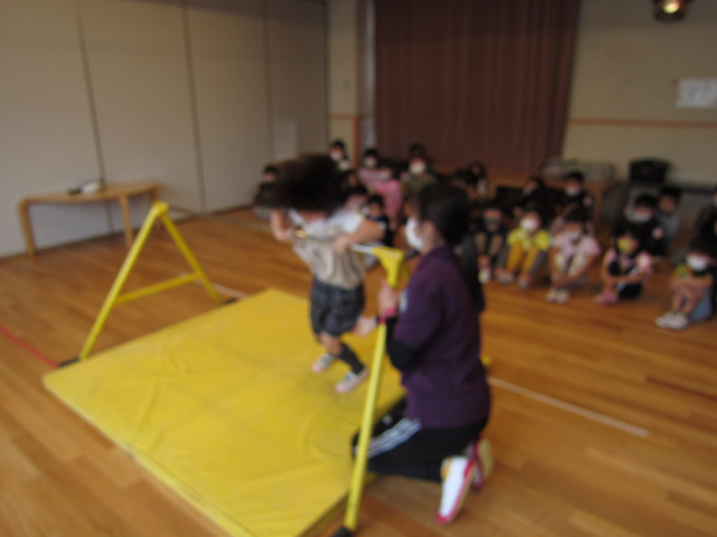 2歳から5歳児さんは、園庭にあつまり、0歳・1歳はテラスからホワイトボードシアターを楽しみました。
