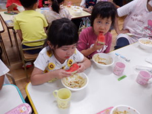 「美味しい!」「ちょっと辛い~」など嬉しそうに教えてくれましたよ!