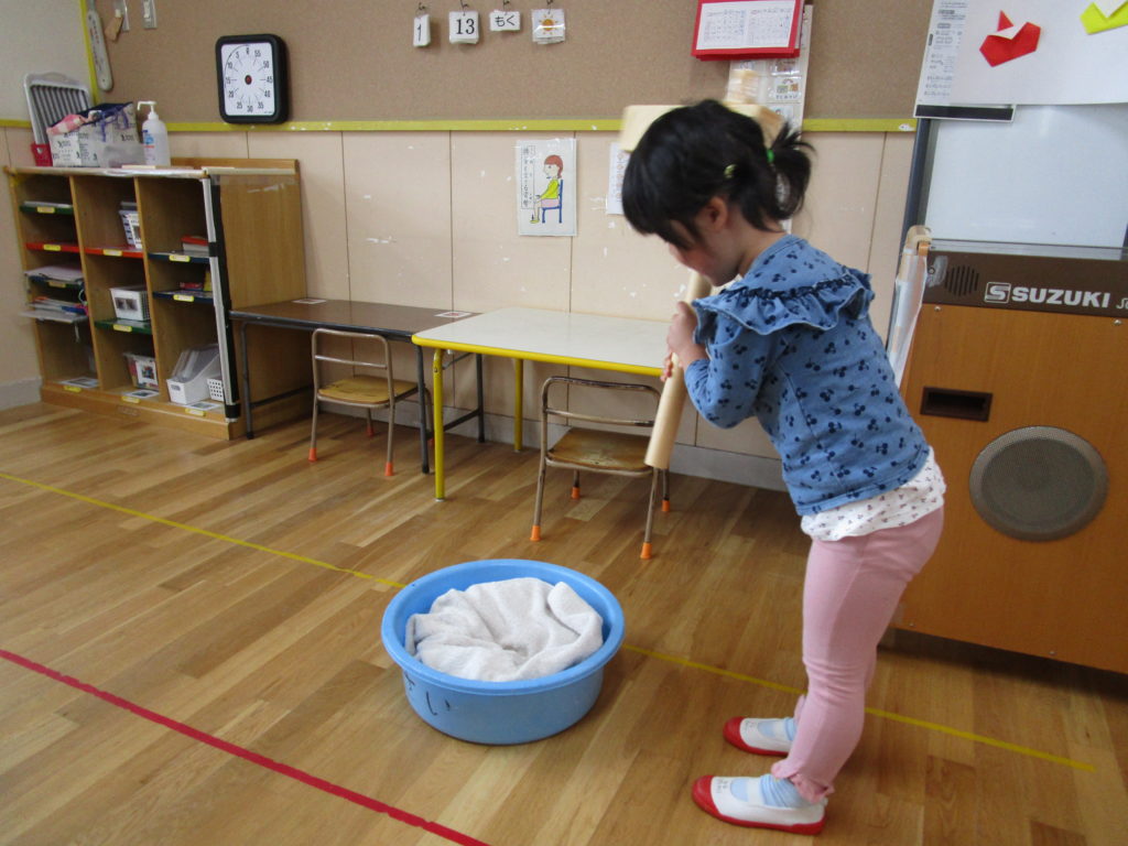 今年のもちつきは、寒さと密を避けるために、お部屋でもちつきごっこも楽しみました。