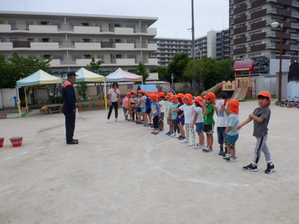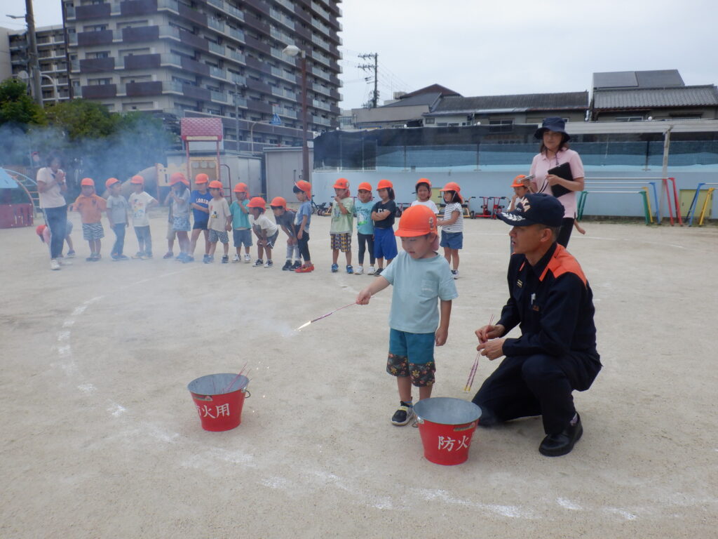 今日は消防署の方に花火の遊び方について指導して頂きました。