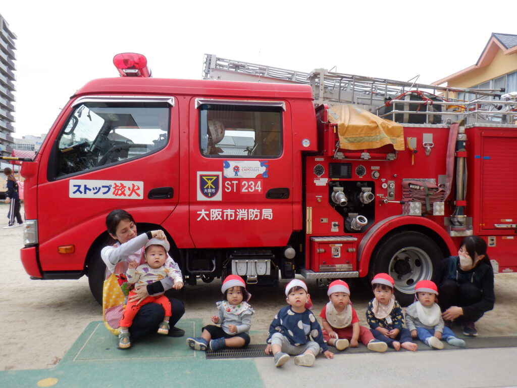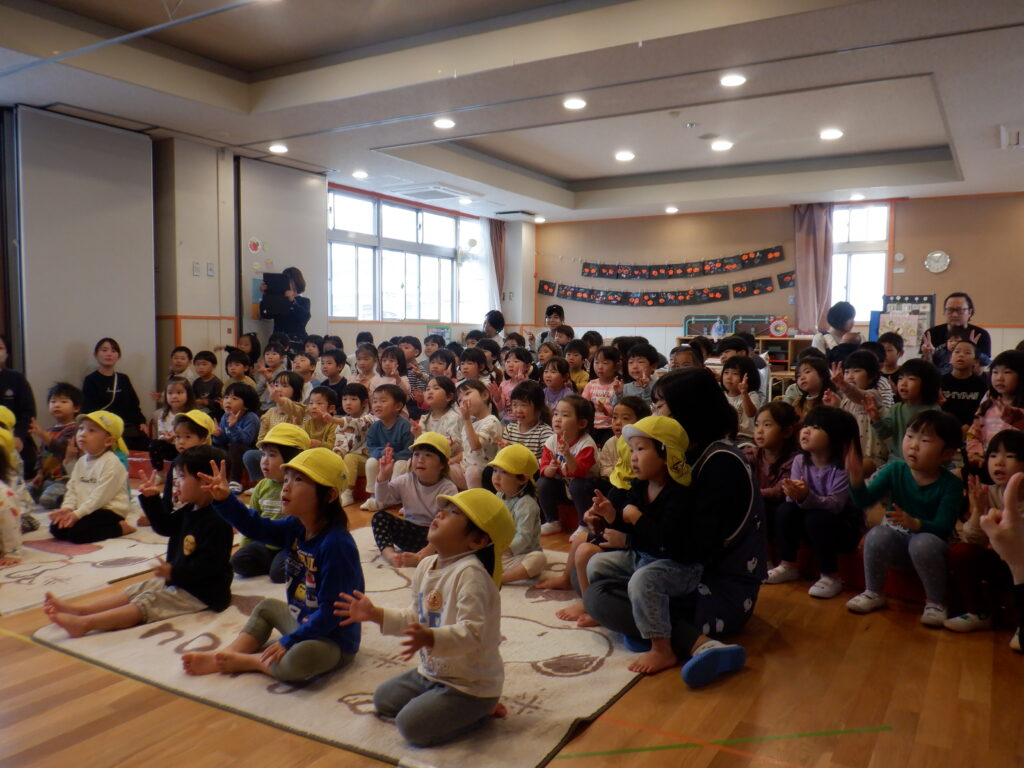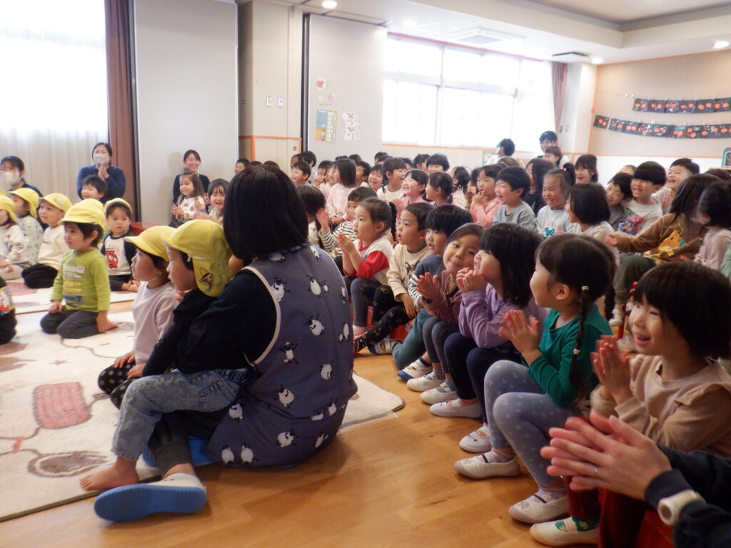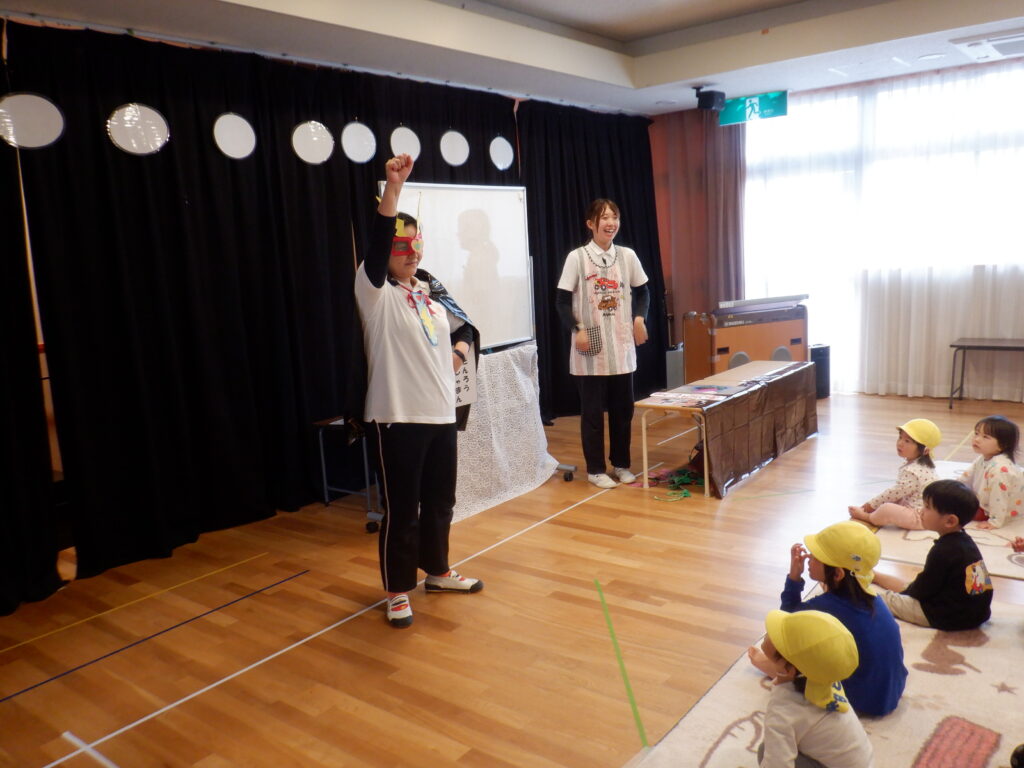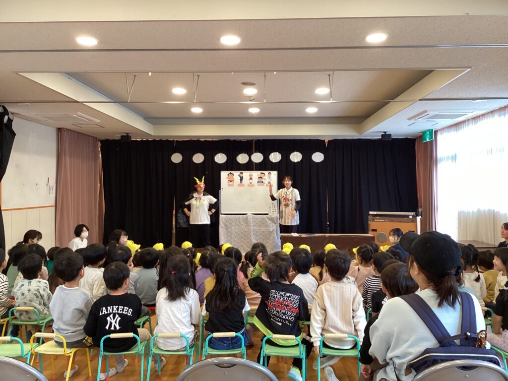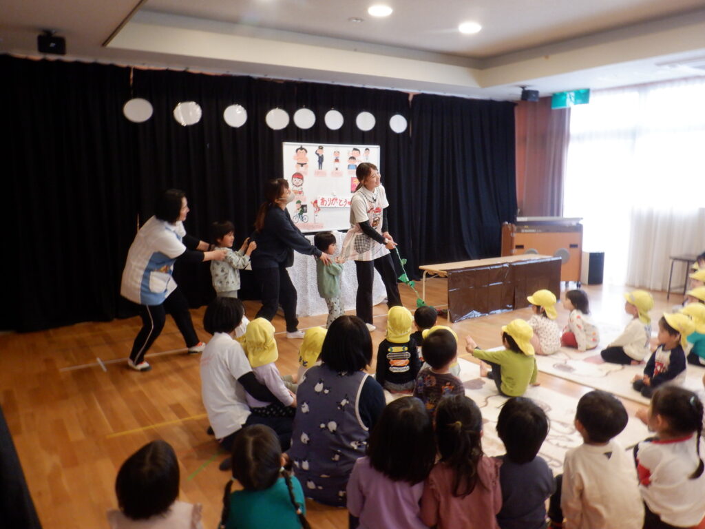 今日は、茨田大宮こども園に“勤労感謝マン”が遊びに来てくれました。