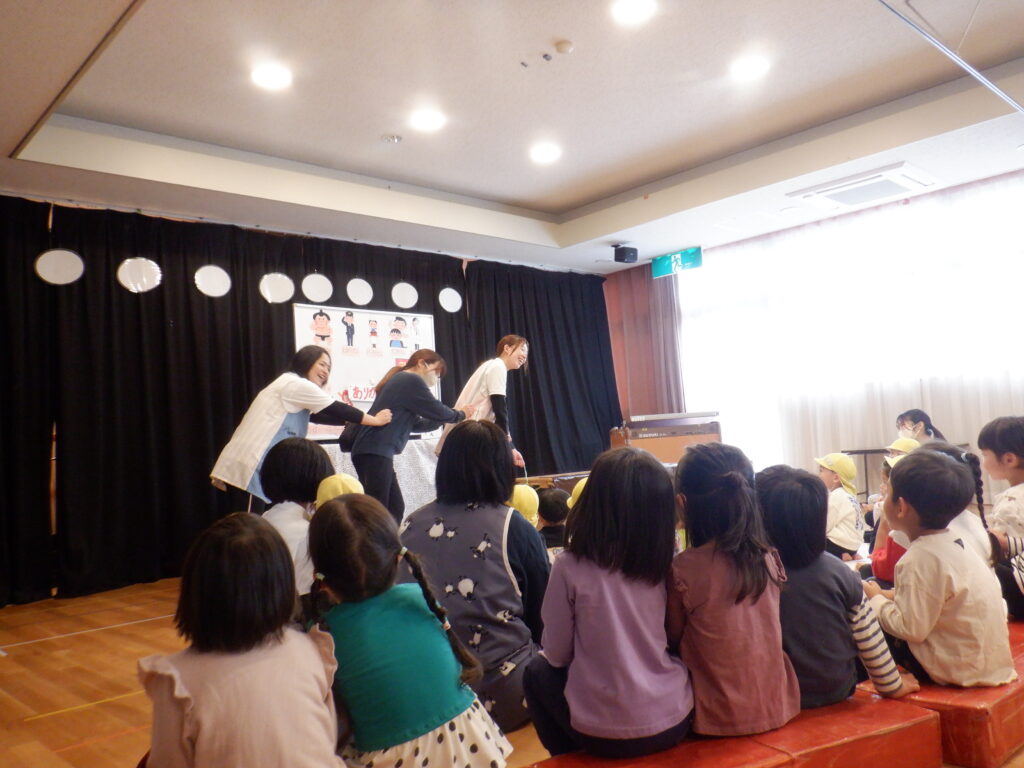 様々なお仕事を知り、勤労感謝の日にはお父さん、お母さんお仕事をしてくれている人たちにありがとうと伝えてみてねとお話してもらいました。