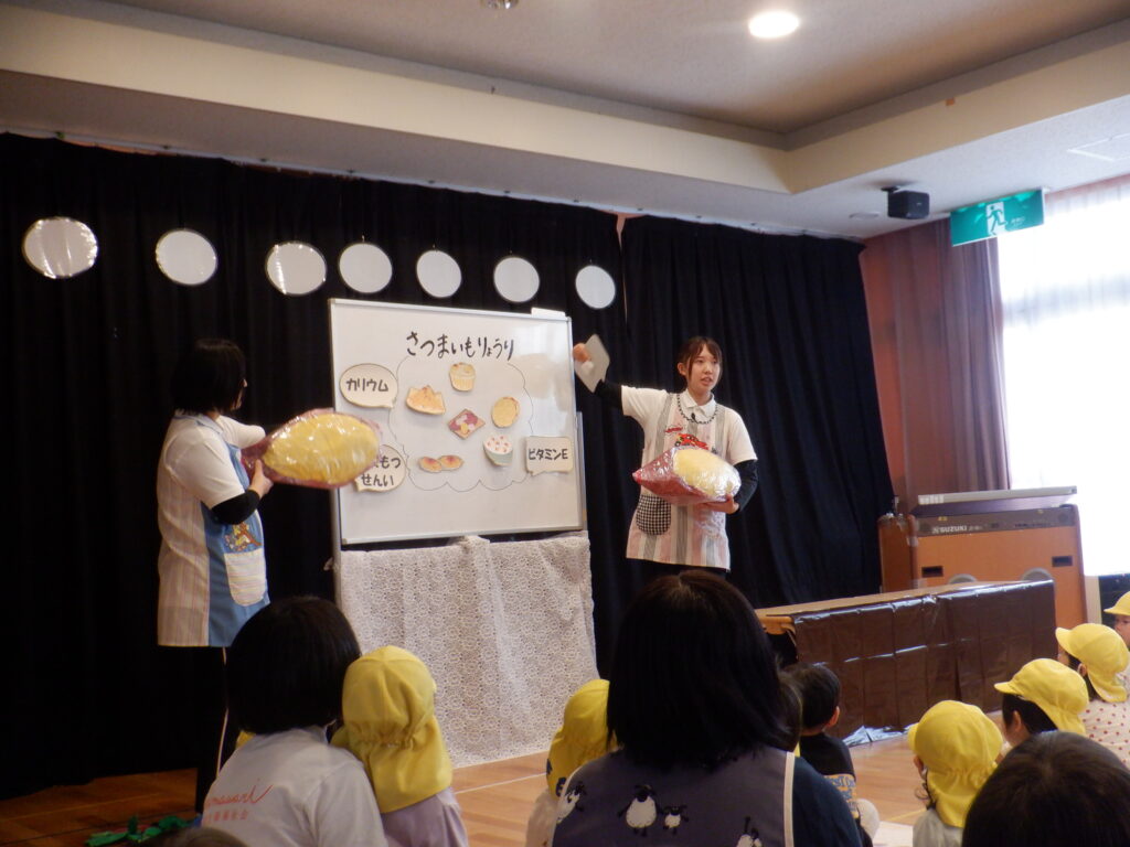 さつまいもの栄養を知り、みんなでやきいもグーチーパーを歌いました。