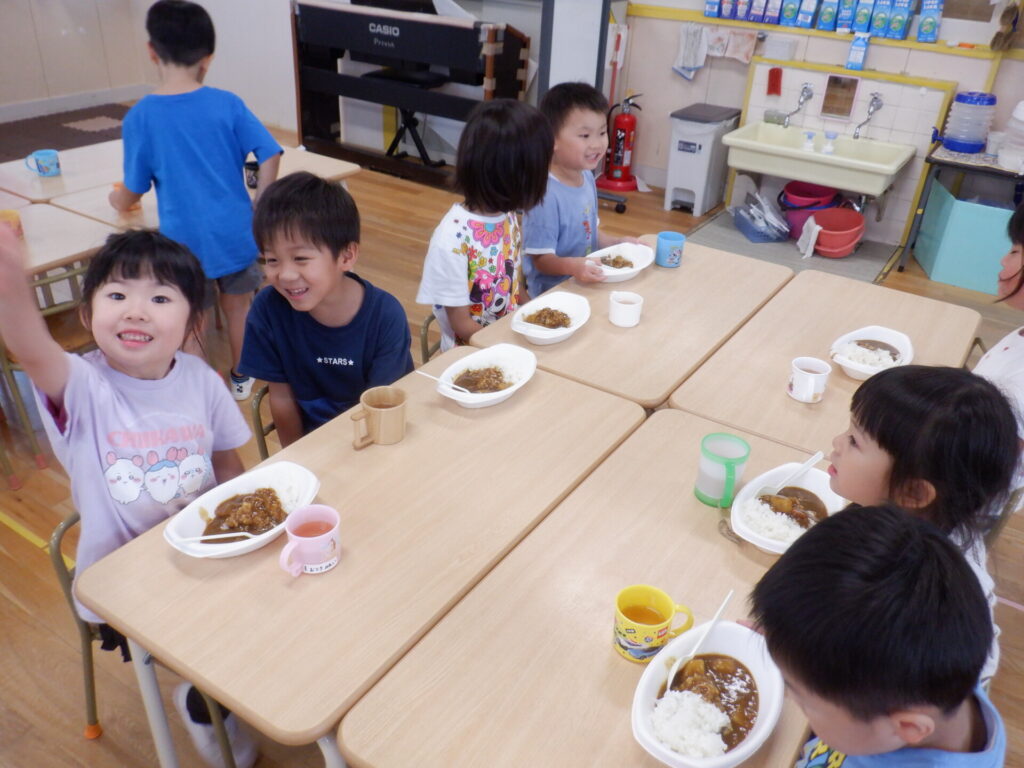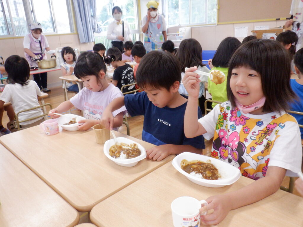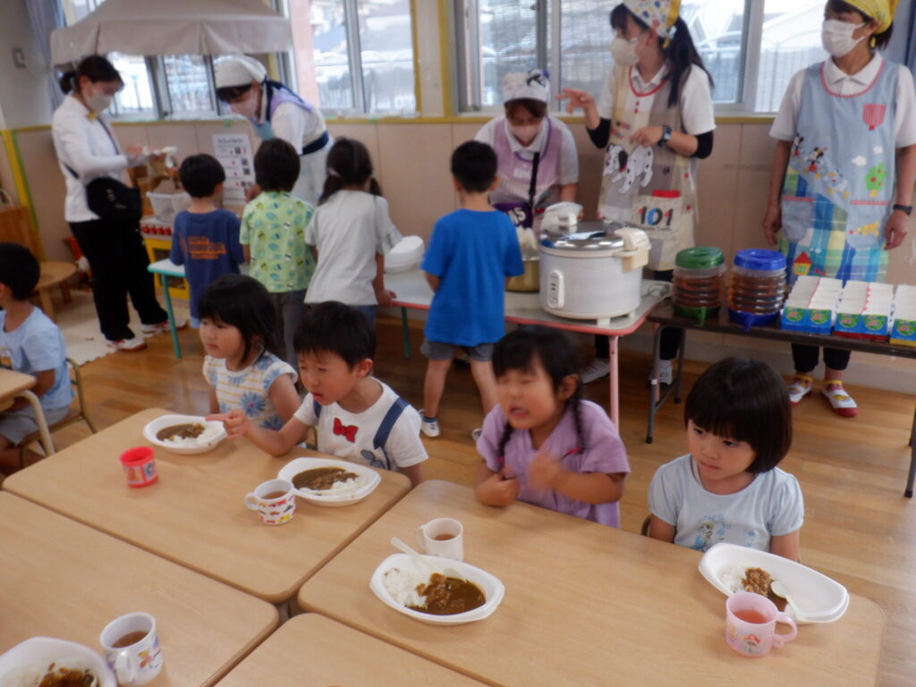 子どもたちが待ちに待ったカレーライスを食べる時間!!