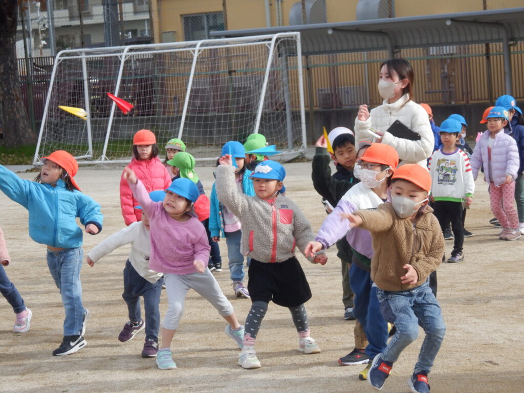 最後にみんなで実際に紙飛行機を飛ばし、遠くまで飛ばすことができると「みて!も一回飛ばしてみる!」と大喜びの子ども達でした。