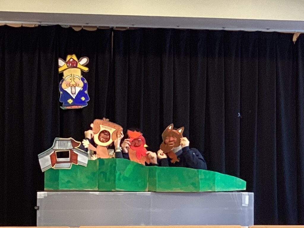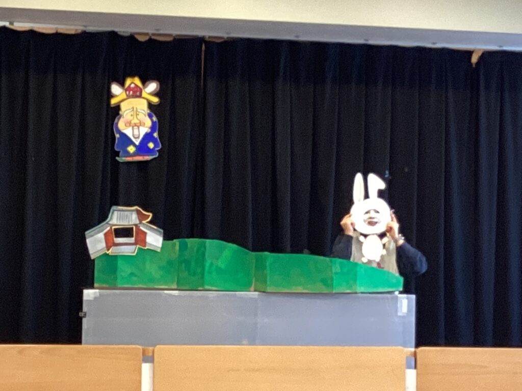 次に干支のお話を聞きました。神様が出て来て、12匹の動物たちに競争をするように言いました。