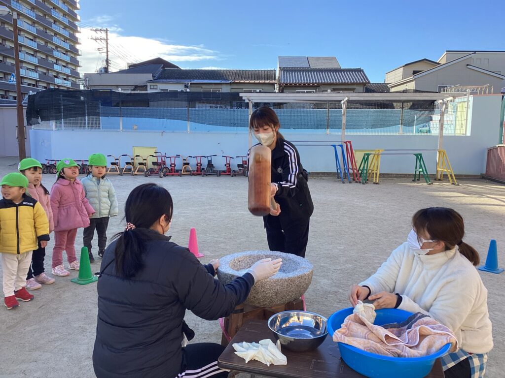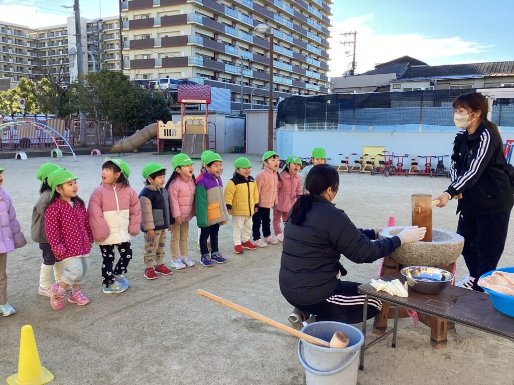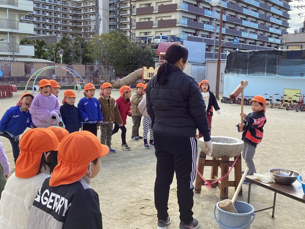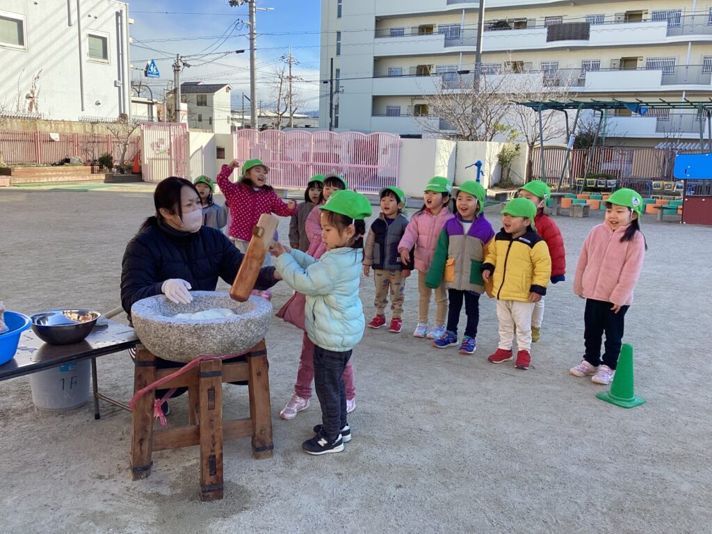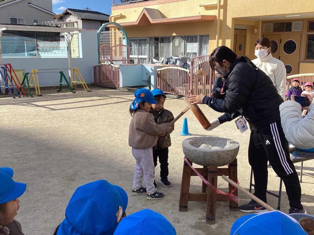 今日は子ども達が楽しみにしていたお餅つきがありました。